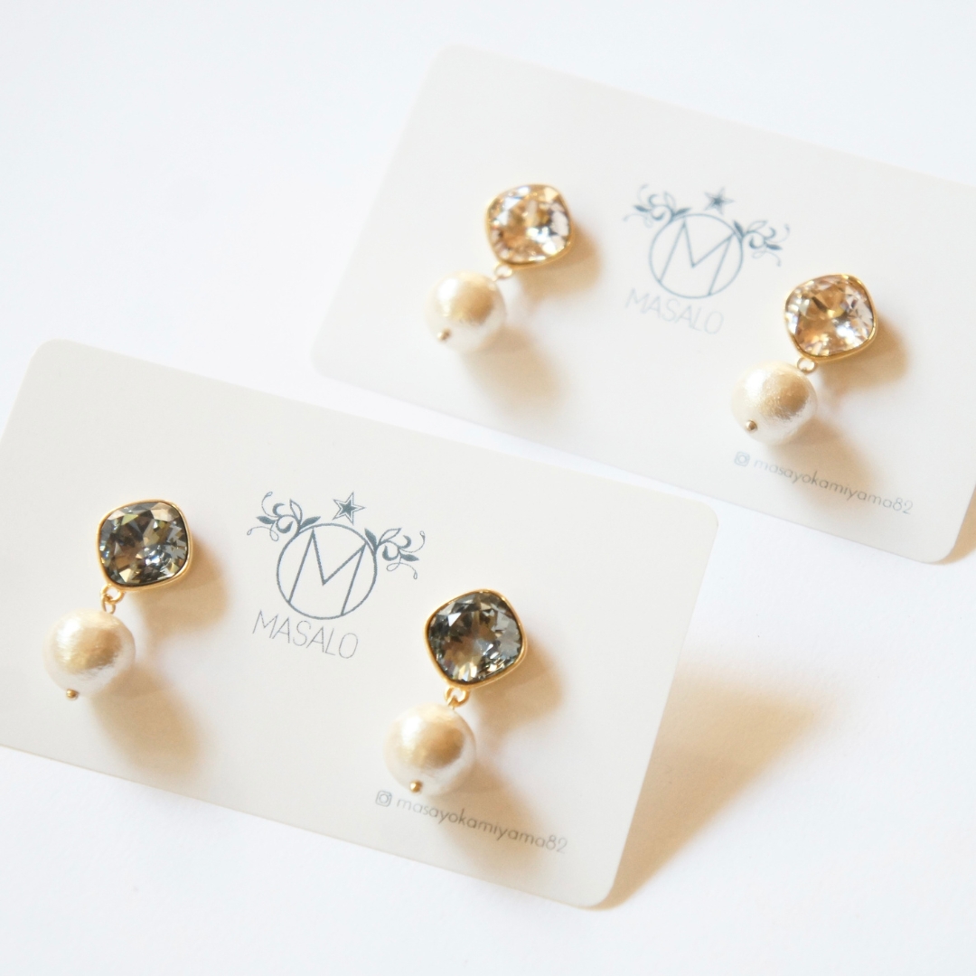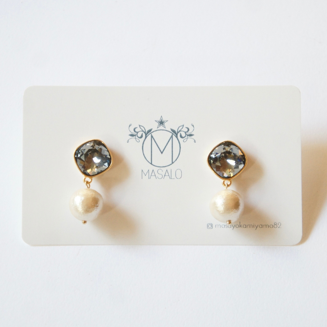 【MASALO】 スワロとコットンパールのイヤリング(2色展開)