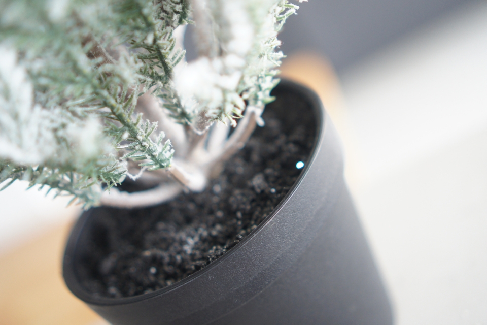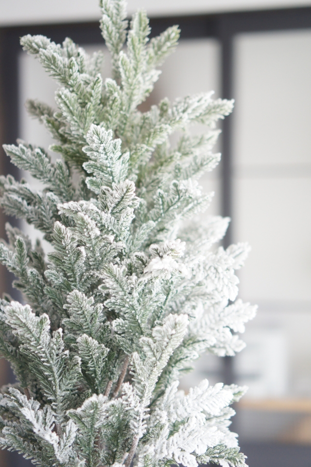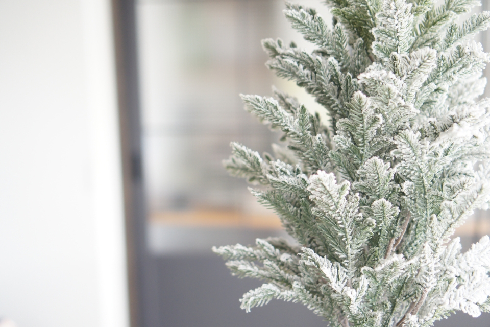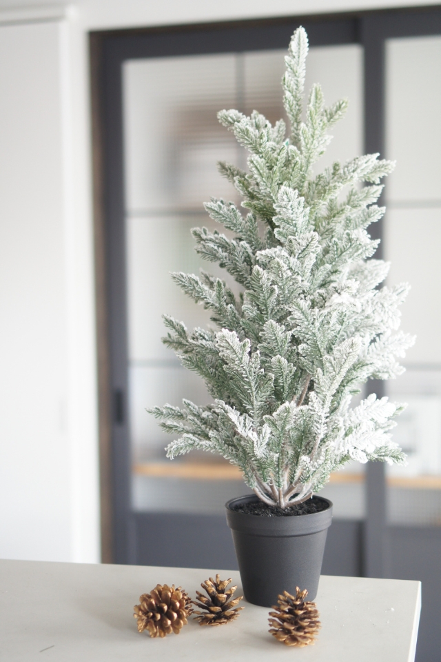 枝先にふんわりと雪をまとったような質感が美しく、インテリアに静かな冬のムードを添えます。