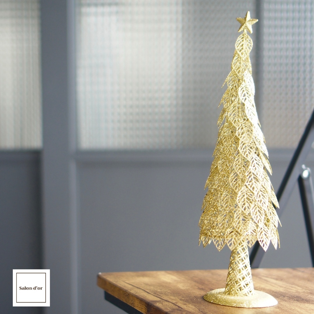 繊細なリーフ模様が連なる上品なゴールドツリー。