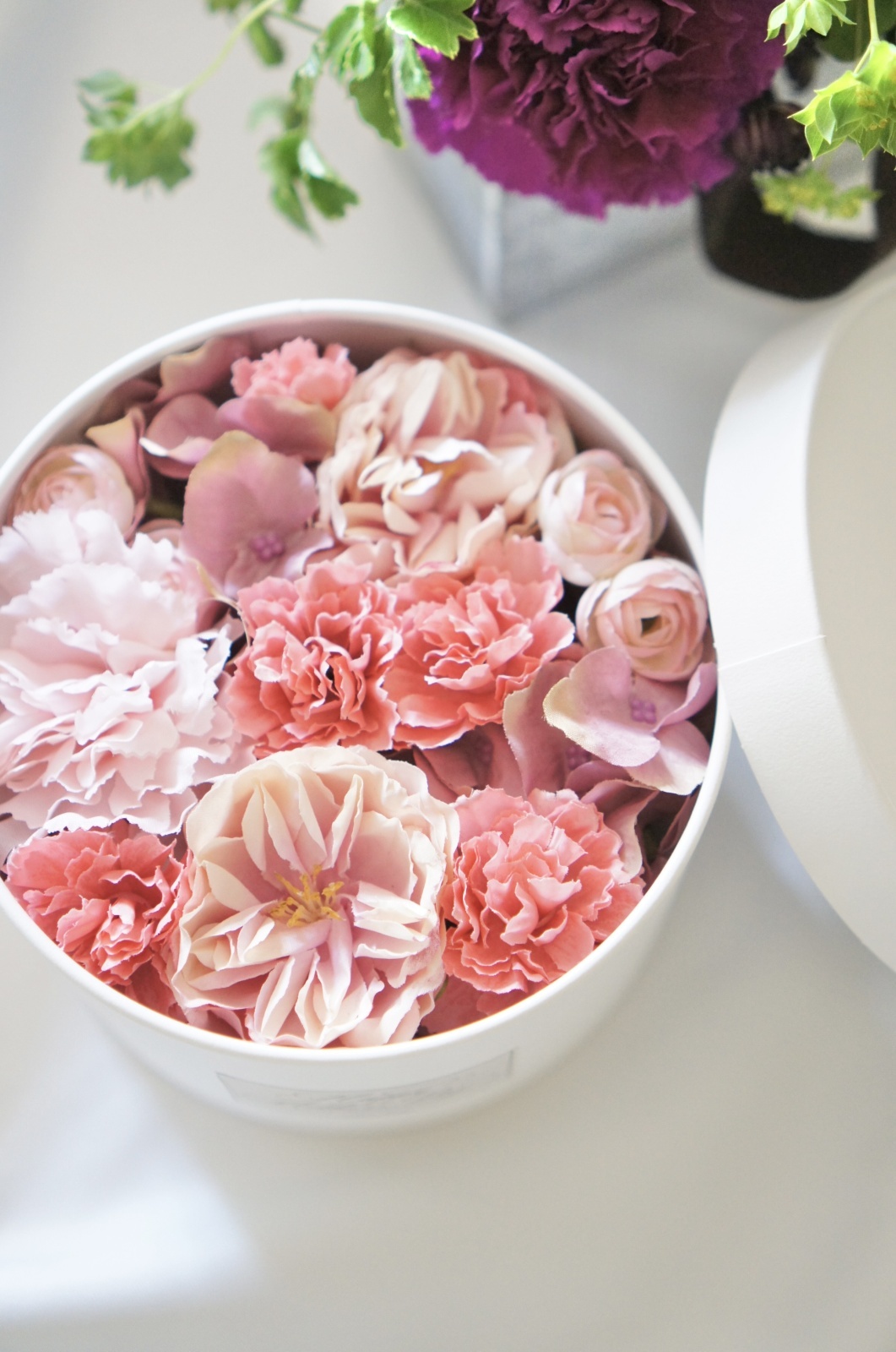 お手入れ不要で長く楽しめる、アーティフィシャルフラワーのボックスアレンジ。